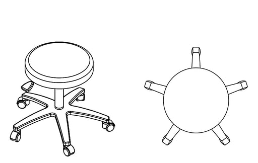 Base noire à 5 pattes.Siège rond pivotant de 14".Rembourrage de mousse haute densité de 3" d’épaisseur.Hauteur ajustable pneumatique de 18 à 24".Ro...