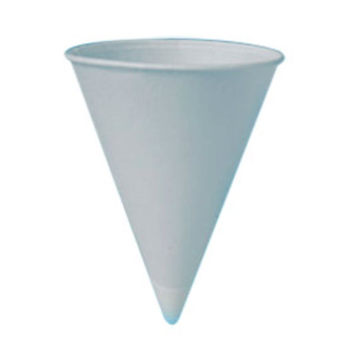 Cone water cups with rolled-rim.