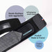 It is not recommended to wear the belt directly on the skin, as the silicone may cause irritation or allergies. The silicone strips are designed to prevent the belt from slipping on clothing.