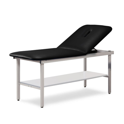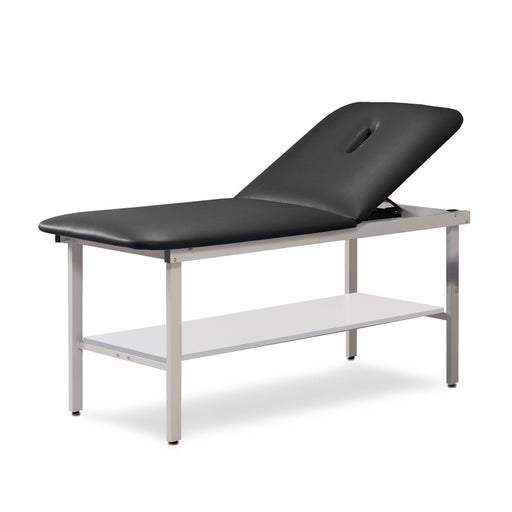 Steel Coinfycare fixed height table with adjustable backrest Dimension: 27" wide x 76" long Height: 31.5" Adjustable backrest 0 - 85° Shelf include...
