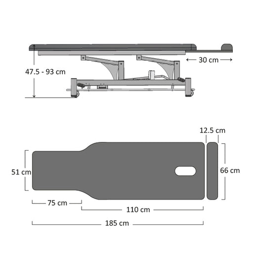 Included features: Carbon Fiber Top - 22" (56cm) wide x 84" (214cm) long 56" Metal free imaging space Motion 1 - Electric Height Range 25" - 43" (6...